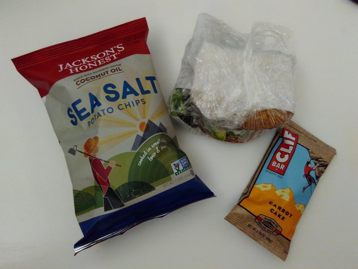 Airport food again today – veggie sandwich – wrapped in – you bet it – plastic.